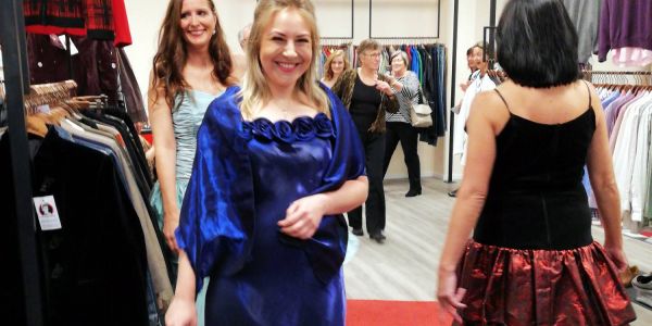 Modenschau im Second-Hand Shop "Schwester Henny" des DRK: Abendkleider und Anzüge wurden präsentiert, die für wenig Geld erworben werden können. Über 60 Menschen kamen in das Geschäft. Foto: DRK