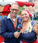 Pünktlich um 9 Uhr öffneten Anuschka Blockhaus und ihr Team das erste Holzfass an der auf Hochglanz polierten Matjeskarre. Und das sprach sich rum: NDR-Radio-Reporter Karsten Sekund (kleines Foto) berichtete Live vom Start in die Matjessaison auf dem Harburger Wochenmarkt.