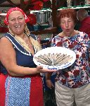 sagte Silvia Muhl (kleines Foto), die nach einer Kostprobe begeistert sagte: "Der ist echt lecker!" Ein Muss für Feinschmecker sind in diesem Jahr natürlich auch die Apfel-Zwiebel-Sahne-Sauce und die Remoulade. Beide Saucen werden täglich frisch von Familie Blockhaus selbst hergestellt.
