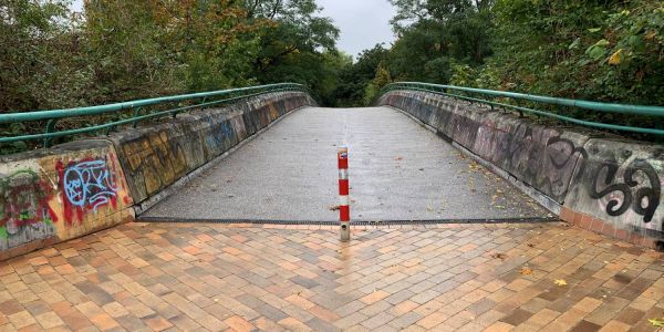 den Experten gecheckt. Am Freitag, 9. Oktober, wird die Fußgängerbrücke über die Hohe Straße zwischen Bremer Straße und dem Übergang zur B75 überprüft. Die Brücke verbindet den Stadtpark mit der Baererstraße.