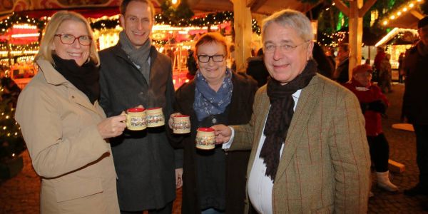 Bezirksamtsleiter Thomas Völsch und Weihnachtsmarkt-Organisatorin Anne Rehberg läuteten mit zahlreichen geladenen Gästen aus Politik und Gesellschaft bei einem Glühwein und Bratwurst die Adventszeit auf dem Rathausplatz ein. "Es wäre schon, wenn wir alle in der jetzt beginnenden Vorweihnachtlichen Zeit nach diesem aufregenden Jahr die Muße finden, auf diesem schönen Markt etwas zu entspannen und zur Ruhe zu kommen", sagte Völsch in seiner Begrüßung.