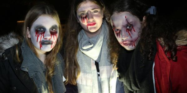 Auch dies drei jungen Frauen kamen herrlich gruselig geschminkt zu Halloween nach Eißendorf. Foto: Christian Bittcher