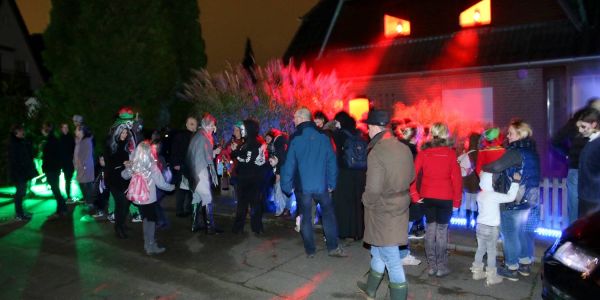 Auch bei Familie Reimers am Blaumeisenweg bildete sich vor der Hausnummer 1 eine lange Schlange. "Rund 230 Kinder haben an dem Abend bei uns geklingelt", sagte Torben Reimers am Mittwoch gegenüber Harburg-aktuell. Mindestens ebenso viele Schaulustige und Eltern waren begeistert von der Horror-Show, die mit viel Aufwand betrieben wird: Bei Familie Reimers waren zehn Personen damit beschäftigt, die aufwendige Technik mit verzerrten Stimmen, 32 Lichteffekten, drei Nebelmaschinen, sechs Lautsprechern und drei Beamer zu steuern und die Besucher zu erschrecken - bevor es vom Sensenmann an der Haustür endlich Süßigkeiten gab. (cb)