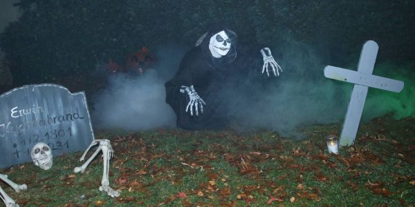 Was die Familien Marx am Hainholzweg und Reimers am Blaumeisenweg wieder auf die Beine stellten, verdient echt Respekt: In tagelanger Vorbereitung organisieren sie ein Grusel-Spektakel vom Feinsten. Das hat sich längst rumgesprochen und lockt die Menschen an.