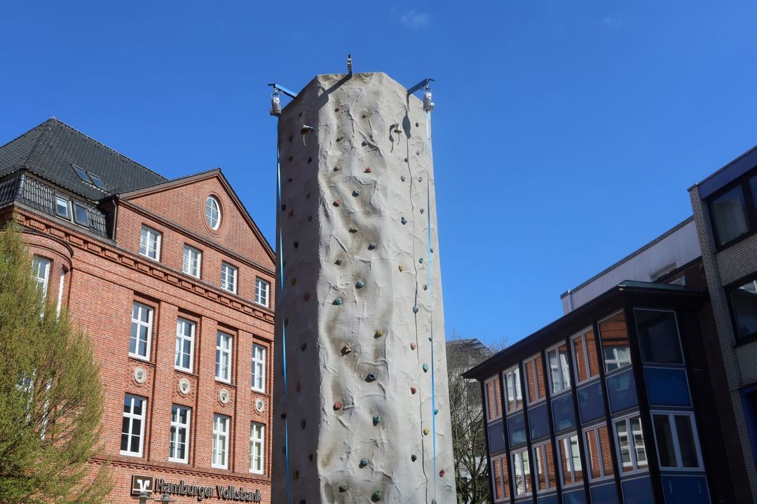 Ein Highlight war der knapp zehn Meter hohe Kletterturm in der Fußgängerzone Lüneburger Straße. Mehr als 100 Personen versuchten – natürlich gesichert und mit Helm - den Turm hinaufzuklettern.