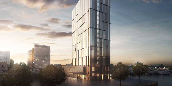 Harburg - Jetzt steht fest, wie das etwa 65 Meter hohe Hotel am Veritaskai aussehen soll. Geplant ist eine "gefaltete Glasfassade. Sie soll das Gebäude,
