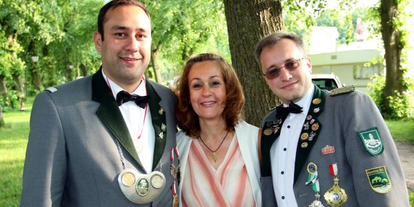 Zu den ersten Gratulanten nach dem Königsschuss gehörten seine Mutter Leila Azzous und Ex-König Ulf Schröder. Foto: Christian Bittcher