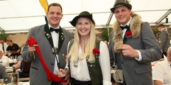 Marketenderin, Strumpf und Fuchs verkauften Küsse und Schnaps im Festzelt: Dominik Mönke (links), Jenny Struve und Pascal Geffke. Foto: Christian Bittcher