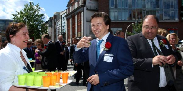 Beim Ummarsch wurden von Geschäftsleuten Schnäpse an die Teilnehmer verteilt. Hier gönnt sich Museumsdirektor Rainer-Maria Weiss einen Schluck. Foto: Christian Bittcher