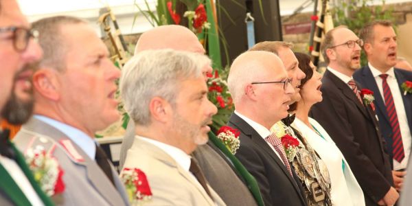 Im Festzelt wurden die Nationalhymne und die Hamburg Hymne Hammonia gesungen. Foto: Christian Bittcher