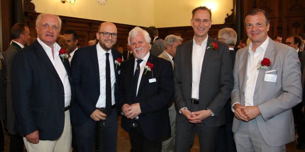 Hochkarätige Gäste beim Empfang im Rathaus: Jochen Winand (v.l.), Manuel Sarrazin, Ralf-Dieter Fischer, Thorsten Römer und Arnold G. Mergell. Foto: Christian Bitttcher