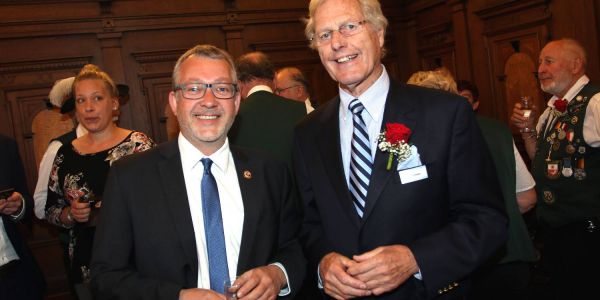 Gemeinsam mit Majestät Jörg Geffke und Bezirksamtsleiterin Sophie Fredenhagen führte er die Reihe der Ehrengäste beim Verlassen des Rathauses an. Unter den Gästen waren auch der Bundestagsabgeordnete Manuel Sarrazin und Andre Trepoll, Vorsitzender der CDU-Fraktion in der Hamburger Bürgerschaft. Empfangen wurden sie vor dem Rathaus nicht nur von vielen Schützen aus Harburg Stadt und Land, sondern auch von sehr vielen Schaulustigen, die bei diesem Spektakel dabei waren.