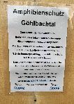 "Zweimal am Tag – morgens und abends - werden die Eimer von ehrenamtlichen Helfern geleert und die Frösche in Wanderrichtung auf die andere Straßenseite gebracht“, erklärt Projektleiter Günter Lach aus dem Leitungsteam der Gruppe Süd. Dabei ist es wichtig, die Erdkröten und Grasfrösche auf der anderen Seite in ihrer Wanderrichtung abzusetzen, denn sie kehren zum Laichen immer wieder an den Ort zurück, wo sie selbst geschlüpft sind. Um Anwohner und Spaziergänger über das Vorhaben zu informieren, wurden mehrere Hinweistafeln (kleines Foto) aufgetell.