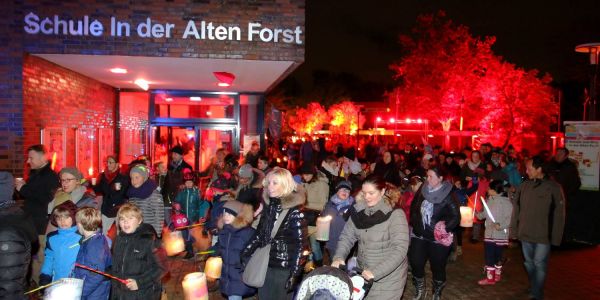 Eißendorf - Drei Spielmannszüge, tolle rote Illumination auf dem Schulhof und viele gut gelaunte Besucher - Das Laternenfest der Schule in der Alten Forst sorgte