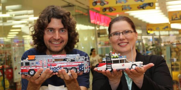 Eröffneten die Lego-Ausstellung: Andres Lehmann und Melanie Wittka freuen sich, das alles geklappt hat. Foto: Christian Bittcher