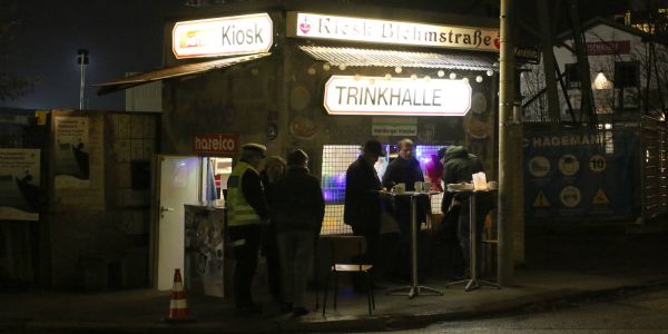Im Beisein aller, die das Möglich gemacht haben, wurde am Mittwoch Abend erstmals das Licht eingeschaltet und mit einem Glühwein auf diese schon länger geplante Investition angestoßen. Die komplett neue Installation ermöglicht die Beleuchtung der Original Werbeschilder der "Trinkhalle seit 1876", die früher für Ausflügler, Hafenarbeiter und Schiffer ein beliebter Treffpunkt gewesen war.