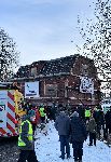 Dann setzte sich der Selbstfahrer in Bewegung. Abgeschirmt von Museums-Mitarbeitern und Polizisten ging es im Schneckentempo über die Ehestorfer Straße in Richtung Kiekeberg-Museum. Erst am späten Nachmittag erreichte der Transport sein Ziel: Die Königsberger Straße im Museum, wo das Haus auf den vorbereiteten neuen Keller abgesetzt wurde.