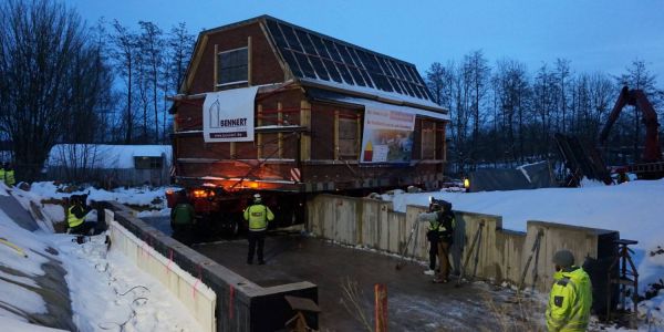 Wegen Corona wurde die ganze Sache eigentlich geheim gehalten, damit der Transport nicht zur Attraktion für Ausflügler wird. Trotzdem verfolgten viele Schaulustige am Straßenrand die Aktion. Für das letzte Stück wurde das Haus, das 1955 gebaut wurde und ursprünglich im gut 30 Kilometer entfernten Tostedt stand, am Sonntagmorgen vom Schwertransporter auf einen Selbstfahrer umgeladen. Inklusive Dekra-Prüfung dauerte das allein rund drei Stunden. Bereits am Mittwoch begann die Verladung des Hauses in Tostedt.