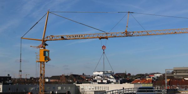 Harburg - Spektakulärer Einsatz für den Telekran am Dienstagmorgen an den Harburg Arcaden: Neue und effizientere Kühltechnik wird demnächst in
