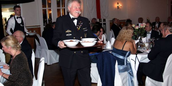 Bevor der Tanz zu Musik der Band "Moonlight Affair" eröffnet wurde musste noch eine wichtige Fragegeklärt werden: Traditionelles Labskaus oder Gulasch aus 1001 Nacht? Diese beiden Gerichte wurden den Gästen nach dem Signal "Backen und Banken" vom Hauspersonal und den Marinekameraden serviert. Am Ende hatte das Seemannsgericht Labskaus klar die Nase vorn.