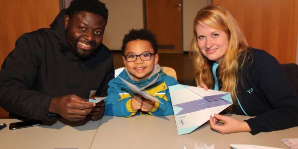 Bei den jungen Besuchern gehörte das Falten eines Flugzeugs oder Bootes zum Pflichtprogramm. Foto: Christian Bittcher
