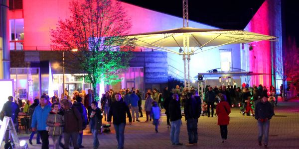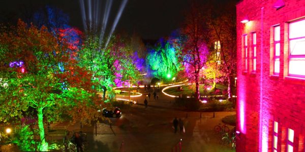 Viele bunte Farben, Lichtschläuche und Strahler tauchten den Campus in ein Lichtermeer. Foto: Bittcher
