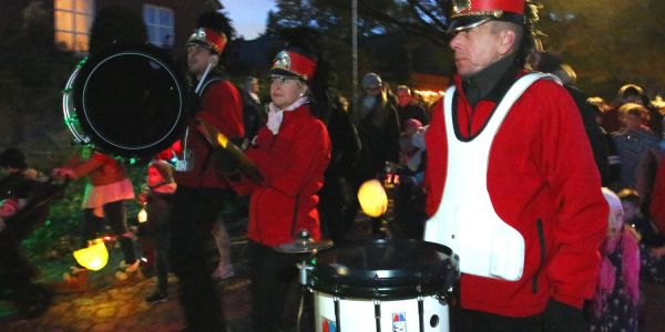 Dann setzte sich der sehr lange Lindwurm aus Erwachsenen und Kindern in Bewegung. Für Stimmung sorgen die Spielleute der Marmstorfer Schützen und der Neugrabener Showband, die beide den Umzug durch Marmstorf begleiteten. Am Wegesrand gab es wieder viel zu gucken: Jedes Jahr werden 18 Märchenfiguren am aufgebaut, die natürlich für leuchtende Kinderaugen sorgen.