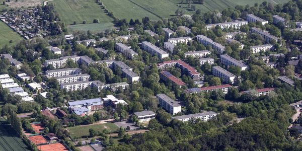 Die in mehrgeschossiger Bauweise entstandene Sandbek-Siedlung. Foto: Andre Zand-Vakili