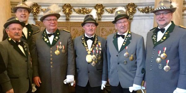 Zur Gilde-Abordnung gehörten auch Peter Kreitmayr, Conrad Bader, Hans Joachim Blohm, Majestät Rolf-Dieter Eckert, Peter Aldag und Frank Kirste. Foto: pr