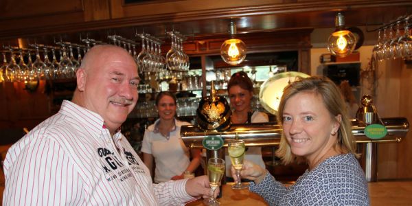 Ingo und Nicole Mönke stoßen auf das neue Restaurant Kaiserlich an. Foto: cb