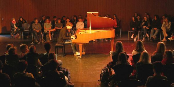 Wochenlang hat das motivierte und engagierte Tonali-Team der Schule geplant und dafür gesorgt, dass alle Schüler von der fünften bis zur 12 Klasse ein einzigartiges Konzert des 18-jährigen Nachwuchskünstlers Aurel Dawidiuk miterleben durften.