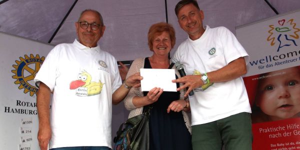 Diejenigen, die ein Los hatten, konnten durch den Erwerb nicht nur viele Preise gewinnen, sondern unterstützten auch einen Guten Zweck: Dem kirchlichen Mütterhilfsprojekt "Wellcome" ist auch wieder der Überschuss des Harburger Entenrennens zugedacht, damit vielen Eltern nach der Geburt ihres Kindes geholfen werden kann. Immerhin: Die ersten 260 Enten und ihre Besitzer wurden mit einem der Preise, die viele Sponsoren aus Harburg zur Verfügung gestellt hatten, bedacht.