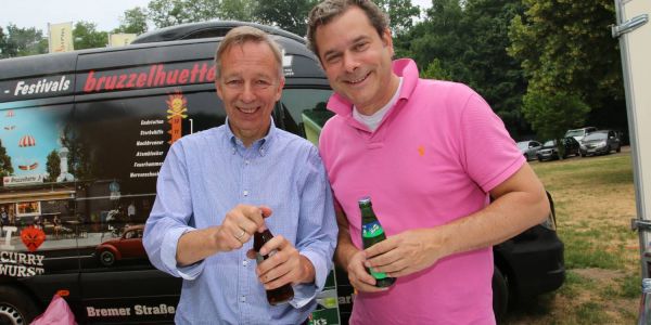Zwei von rund 30 Rotariern, die hinter den Kulissen halfen: Heinz Lüers, ehemaliger Vorstandsvorsitzender der Sparkasse Harburg-Buxtehude und Lühr Weber (Arcaden Apotheke). Foto: Christian Bittcher