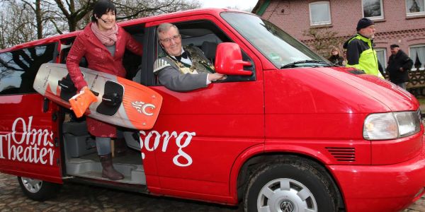 Die Protagonisten wurden im Ohnsorg-Bus zur Teichwette gefahren. Foto: Bittcher