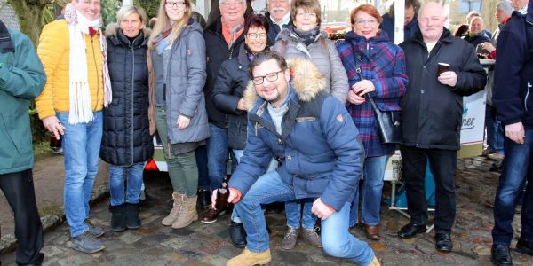 Große Abordnung: Gildekönig Sven Kleinschmidt (vorn) im Kreise seiner Gilde-Kameraden. Foto: Bittcher