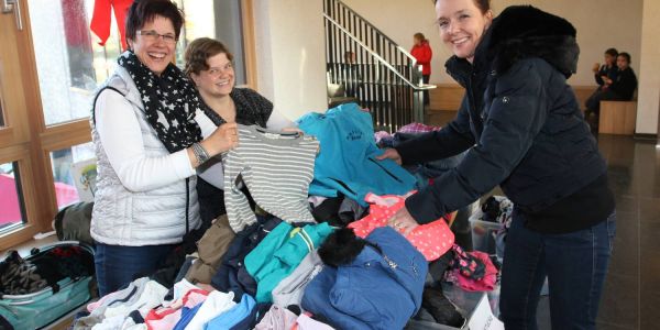 Das wurde alles vergessen und nicht abgeholt: Catrin Nolting (von links), Katrin Hagemann und Katja Puhlmann bei dem großen Fundsachen-Flohmarkt. Foto: Bittcher