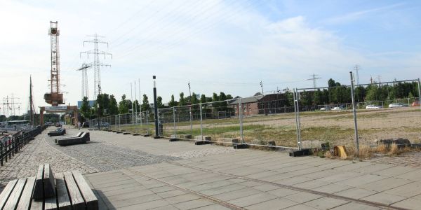 Wer jetzt denkt, das auf dem Sahnegrundstück in direkter Lage zum Lotsekai in Kürze mit den Bauarbeiten für ein weiteres neues Gebäude im Binnenhafen begonnen wird, liegt falsch: Die Fläche wird demnächst zunächst als Parkfläche vermietet.