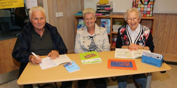 Drückten beim Großelterntag noch einmal die Schulbank: Willi (76) und Elke (77) Holst gemeinsam mit der 82-jährigen Edith Peters (rechts). Foto: Christian Bittcher
