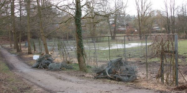 Der alte Zaun war marode und muss ersetzt werden: Auf der Hundeauslaufwiese wird nach den Gehölzschnittarbeiten ein neuer Zaun aufgestellt. Foto: Christian Bittcher
