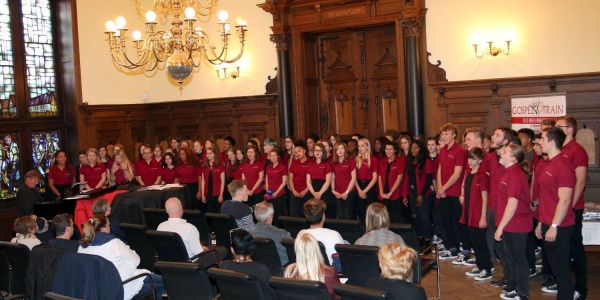Ungewöhnliche Klänge im Sitzungssaal: Bei der CD-Vorstellung sang Gospeltrain zwei Stücke. Foto: Christian Bittcher