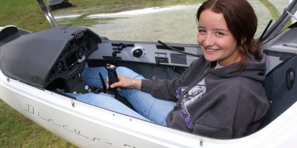 Segelschülerin Sharon vom HAC-Boberg im Cockpit des Segelflugzeugs. Foto: Christian Bittcher