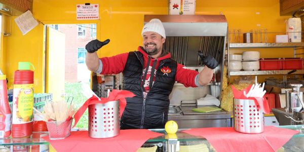Bruzzelhütte vor Ort: Stefan Labann servierte seine berühmte Currywurst. Foto: Christian Bittcher