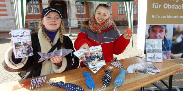 Julia Mamminga (links) und Christina Lechler waren am Info-Stand des Harburger DRK im Einsatz. Foto: Christian Bittcher