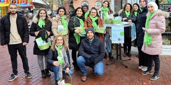 Mit Datteln und Flyer: Die Stadtteileltern warben in der Lü neue Mitglieder und informierten über ihre Arbeit im Stadtteil. Foto: Christian Bittcher