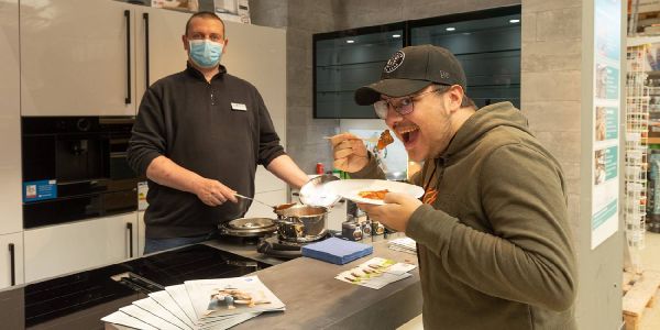An der Showküche bei OBI am Großmoordamm gab es kleine Häppchen. Foto: André Zand-Vakili
