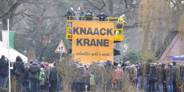 Erstmals wurde die Teichwette von einer Hebebühne moderiert. Foto: zv