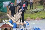 Schützenkönig Arne Wichers balanciert über den wackeligen Steg. Foto: cb
