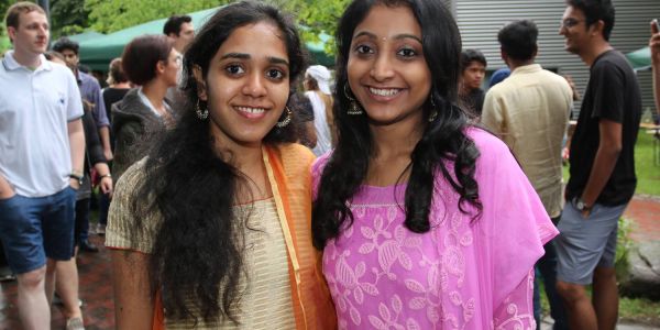 Die Studentinnen Surekha (links) und Prathima aus Indien kamen in ihrer Indischen Landestracht zum Sommerfest. Foto: Christian Bittcher