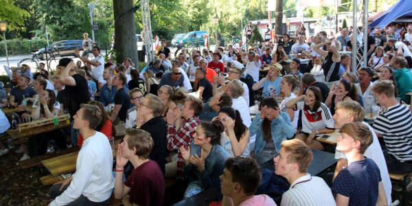 Mehrere hundert Fans hatten sich in der Bruzzelhütte versammelt um mitzufiebern und natürlich mitzufeiern. Doch daraus wurde nichts: Deutschland ist raus. Foto: Christian Bittcher