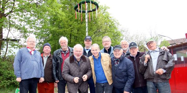 Freude bei den Knopfsergenaten: Der Maibaum steht! Foto: Christian Bittcher